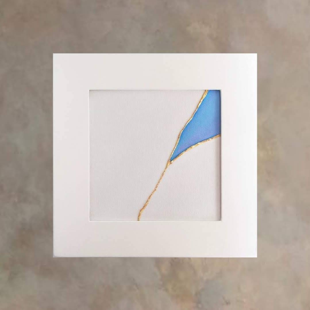 sold『life』金継ぎのインテリアアート 純金箔 モダン ゴールド シンプル 余白 青 ブルー 宝石